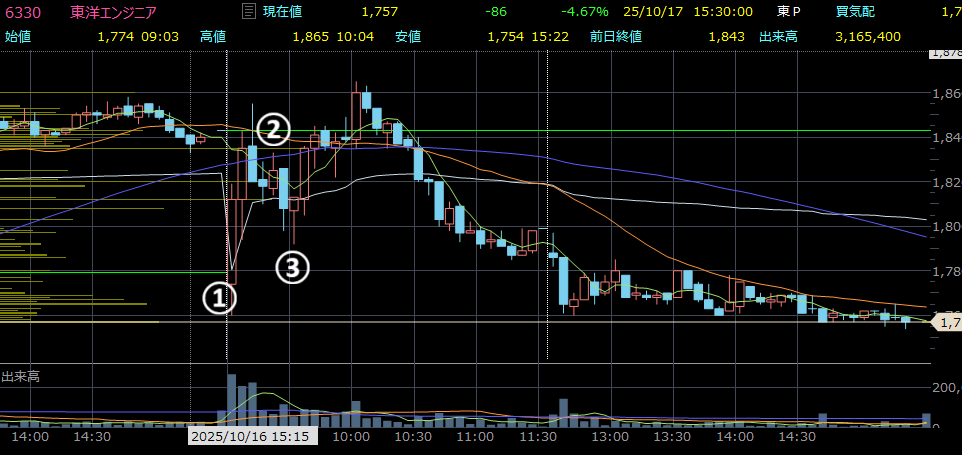 画像①ギャップダウンからスタート。ビビッてたから寄り付きは難しくても途中からエントリーできたはず。