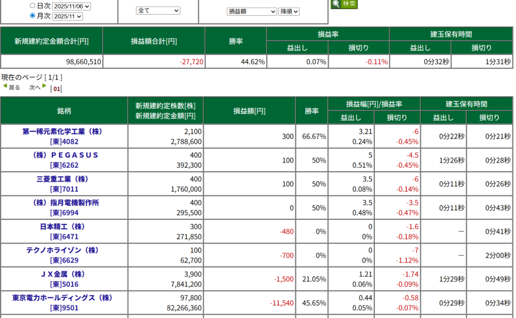 11月の損益:-27,720円
